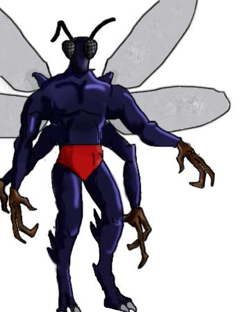 Terrorfly is insectoid just like the MOTU Buzz-Off, apart from a few noticeable differences. He has four arms, four wings and because he is part fly (instead of bee) he is a dark blue (almost black) colour.